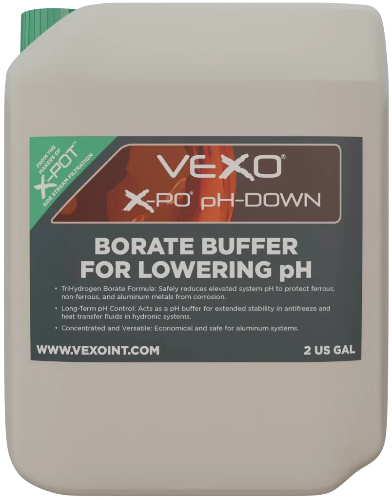 - Containes TriHydrogen Borate to safely REDUCE elevated system pH, this helps protect ferrous and non-ferrous metals in fully or semi-closed loop systems from accelerated corrosion due to high pH.